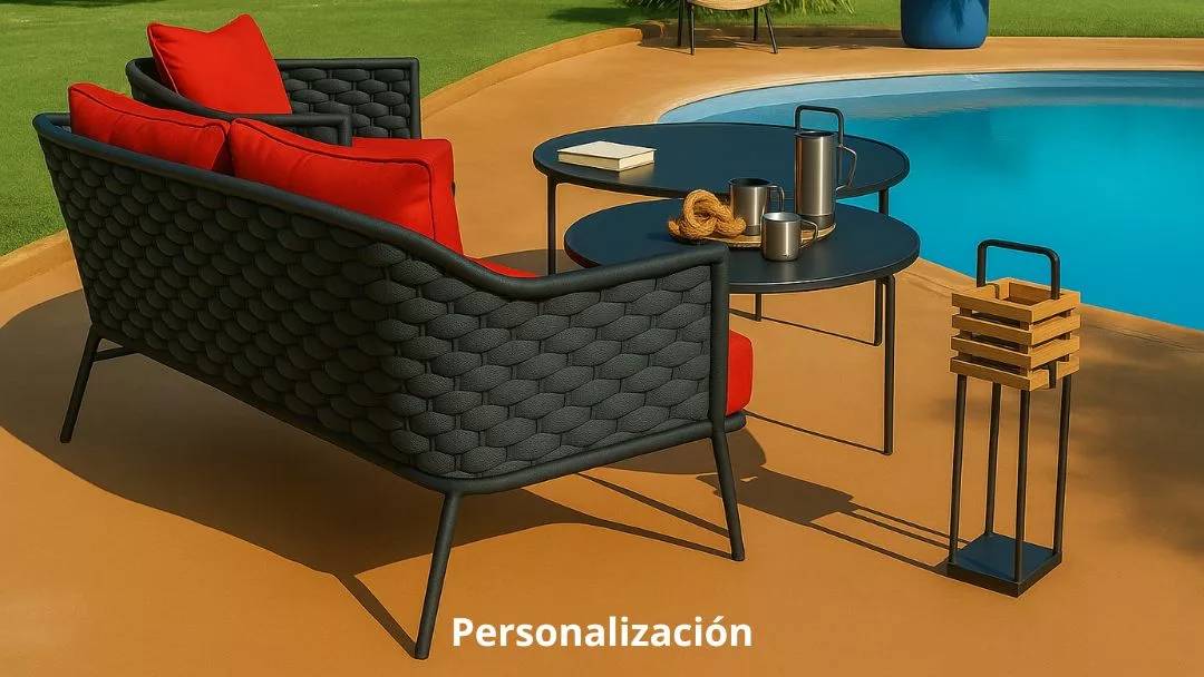 Una característica clave de este conjunto es su practicidad: tanto el sofá de dos plazas como el butacón son apilables. Esta funcionalidad es perfecta para optimizar el espacio cuando no se usan, facilitando su almacenamiento durante temporadas frías o simplemente al necesitar despejar un área.