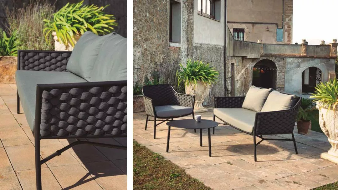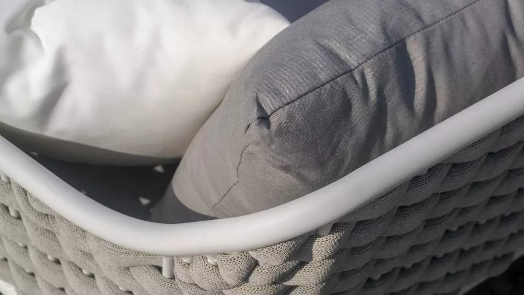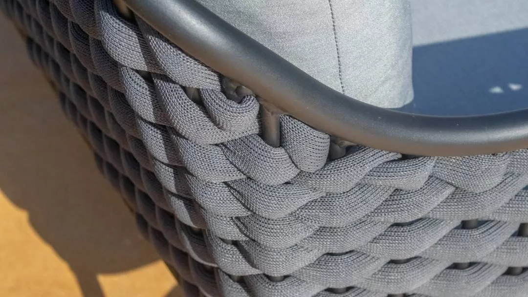 El diseño envolvente de ambas piezas está hecho con cuerda de alta calidad y un trenzado especial. Este detalle no solo es estético, dando ligereza y un aire acogedor, sino que también ofrece gran resistencia a la torsión y al desgaste. Así, la cuerda mantiene su forma y color originales ante las condiciones exteriores.
