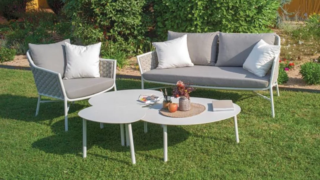 La durabilidad del conjunto Ilena se basa en sus materiales de fabricación. La estructura de aluminio pintado al horno es robusta y resistente a la corrosión. Los cojines, hechos con tejido Olefin, resisten rayos UV, humedad y manchas, siendo además suaves y confortables. El conjunto se presenta en dos atractivas combinaciones: aluminio blanco artic con cuerda blanco beige y cojines beige, o aluminio negro con cuerda gris oscuro y cojines beige. Elige Ilena para equipar tu exterior con diseño, calidad, confort y la ventaja de poder apilar.
